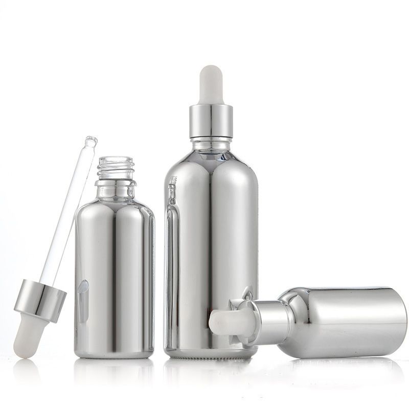 Silver Coated Essential Oil Bottles Glass with Pipette Dropper 10~50ml